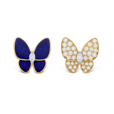 Two Butterfly耳环, 18K黄金, 钻石:  36颗,  0.99 克拉, 青金石:  4颗, Three Fourth, Jewelry Earrings_梵克雅宝_Van Cleef & Arpels